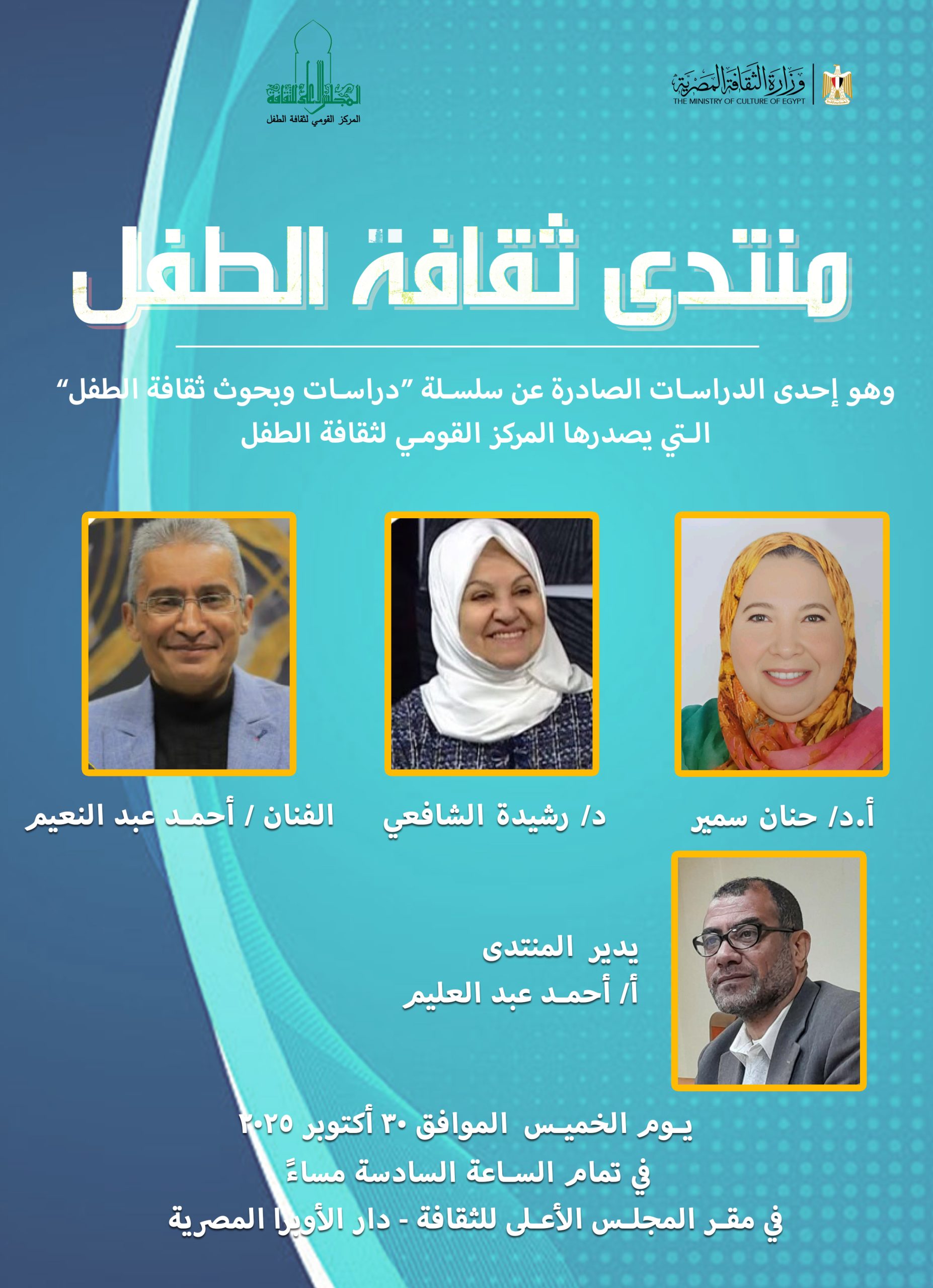 جدير بالذكر أن منتدى ثقافة الطفل يهدف إلى مناقشة القضايا والمشكلات والبحوث والدراسات الخاصة بالطفل.