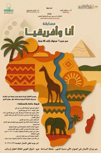 في إطار فعاليات وزارة الثقافة برعاية أد.جيهان زكي وزير الثقافة، وإشراف أد.أشرف العزازي أمين عام المجلس الأعلى للثقافة، يعلن المركز القومي لثقافة الطفل برئاسة الكاتب محمد ناصف عن مسابقة “أنا وأفريقيا” في مجال الفنون (الرسم)، حيث يرسم الطفل لوحة فنية يعبر فيها عن نظرته وتخيله لقارة أفريقيا وخاصة دول حوض النيل، وتهدف المسابقة إلى زيادة الوعي بدول إفريقيا وتراثها وثقافتها باعتبار مصر جزء لا يتجزأ من هذه القارة الكبيرة.