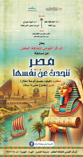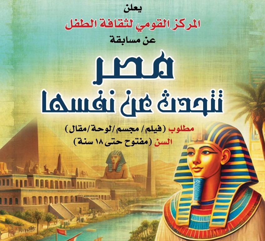 في إطار فعاليات وزارة الثقافة برعاية الأستاذ الدكتور أحمد فؤاد هنو وزير الثقافة، وإشراف أد.أشرف العزازي أمين عام المجلس الأعلى للثقافة، يعلن المركز القومي لثقافة الطفل برئاسة الكاتب المسرحي محمد عبد الحافظ ناصف عن الدورة الأولى من مسابقة “مصر تتحدث عن نفسها”، فيما تهدف المسابقة إلى تنمية روح الانتماء لدى الأطفال وتنمية الوعي بحضارة مصر وتاريخها وتشجيعهم على التعرف على تاريخ مصر العظيم.